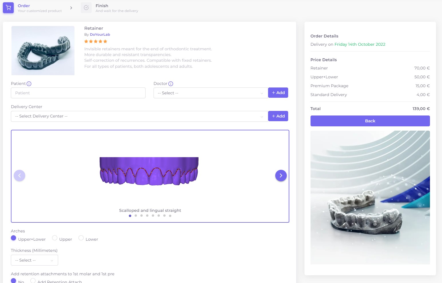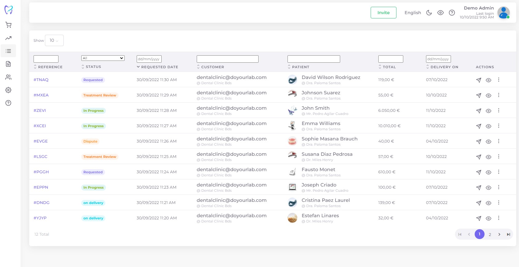 Our cloud-based software is an online platform designed for laboratories that want to offer their catalog of manufactured products or aparatology to your customers dental clinics, thus being able to streamline and automate the entire process from start to finish.